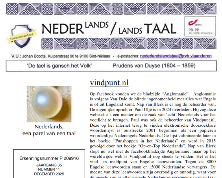 Nummer 3 Jaargang 35 Maart 2025 Maandelijkse uitgave verschijnt niet in juli. Haal hier de PDF versie op Contacteer Nederlands Landstaal via het e-adres nederlandslandstaal@vvb.vlaanderen Deel deze editie van NederlandsLandstaal op uw sociale media kanalen Facebook Twitter LinkedIn Telegram WhatsApp